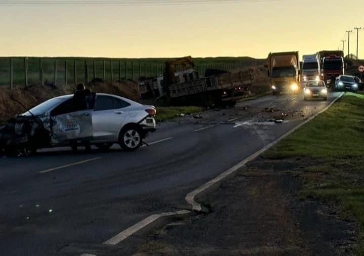 Um acidente de trânsito envolvendo três veículos ocorreu na última terça-feira, 2 de julho, na PR-438, no quilômetro 56+600m, próximo ao distrito de Guaragi, em Ponta Grossa. O sinistro, classificado como acidente complexo, foi registrado às 18h00 e mobilizou a equipe do Posto Policial Rodoviário de Ponta Grossa. De acordo com informações colhidas no local, o acidente envolveu um caminhão Ford Cargo 2422, com placas de Ponta Grossa, um Chevrolet Onix, de Belo Horizonte, e um Ford Focus, do Paraná. O motorista do Ford Focus, de 50 anos, abandonou o local antes da chegada das autoridades. Dinâmica do acidente Conforme relatos de testemunhas e análise preliminar da equipe policial, o Ford Focus seguia na mesma direção que o caminhão Ford Cargo. Em um momento não especificado, o Ford Focus invadiu a pista contrária, colidindo frontalmente com o Chevrolet Onix, que transitava no sentido oposto. A colisão fez com que o Chevrolet Onix mudasse de trajetória, atingindo o caminhão Ford Cargo. O motorista do Chevrolet Onix, de 66 anos, foi conduzido ao hospital com ferimentos leves. O condutor do caminhão Ford Cargo, de 68 anos, não sofreu lesões e prestou depoimento no local. Investigação e medidas A polícia segue investigando as circunstâncias do acidente e busca identificar o paradeiro do motorista do Ford Focus. As autoridades alertam para a importância de respeitar as normas de trânsito e conduzir com cautela, especialmente em trechos de rodovia. Este acidente ressalta a necessidade de atenção redobrada nas estradas e de um comportamento responsável ao volante para prevenir tragédias e garantir a segurança de todos os usuários das vias.