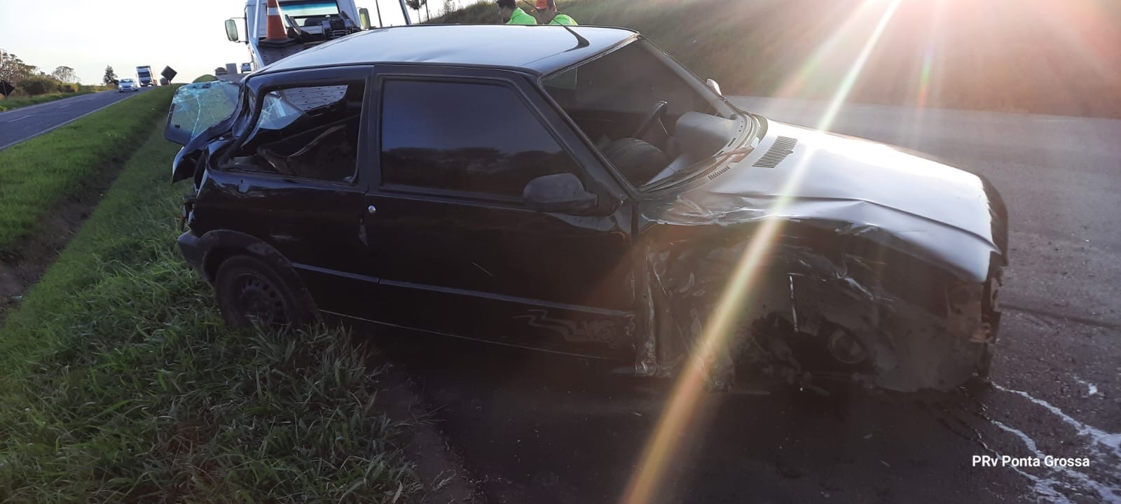 Um acidente do tipo abalroamento longitudinal foi registrado na rodovia PRC-373, no quilômetro 167, entre o entroncamento da PR-151 e o entroncamento da BR 376, em Ponta Grossa. O acidente foi em torno das 6h30 de hoje (23). A colisão envolveu dois veículos: um automóvel Fiat Uno, com placas de Carambeí, e um caminhão trator Iveco, com placas de Porangatu (GO) e semirreboques Guerra e Rodovia, com placas de Itaja (SC). O condutor do Fiat Uno, de 51 anos, não sofreu ferimentos. No entanto, o passageiro do veículo, também de 51 anos, teve ferimentos leves e foi encaminhado para a UPA Santana de Ponta Grossa para receber atendimento médico. O motorista do caminhão Iveco, de 32 anos, saiu ileso do acidente. Segundo informações passadas pela Polícia Rodoviária Estadual (PRE) no local, o Fiat Uno trafegava pela rodovia quando colidiu longitudinalmente com o caminhão que estava à sua frente, resultando em danos de média monta para ambos os veículos.
