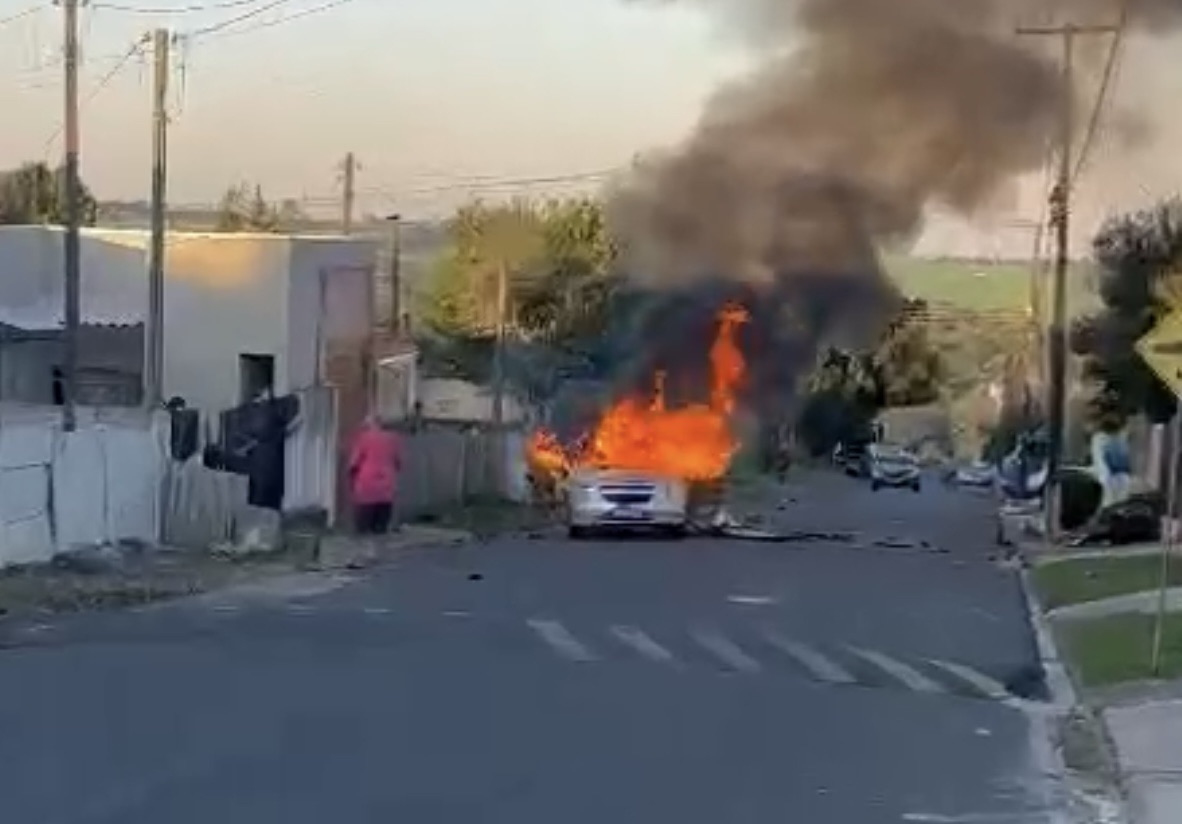 Um estrondo abalou o bairro Bela Vista, em Carambeí, na manhã de hoje (13) quando um carro explodiu na Rua das Bromélias por volta das 7h30. O incidente envolveu um veículo modelo GM Ônix e resultou em um incêndio que rapidamente tomou conta do automóvel. A Defesa Civil de Carambeí foi acionada imediatamente e enviou equipes ao local para combater as chamas e garantir a segurança dos moradores. Além do combate ao fogo, os bombeiros realizaram a sinalização adequada da via, evitando que pedestres e veículos se aproximassem devido à baixa visibilidade causada pela fumaça intensa. De acordo com relatos preliminares, a explosão pode ter sido causada por um cilindros de solda. No entanto, esta informação ainda não foi confirmada oficialmente pelas autoridades. O trabalho dos brigadistas foi essencial para controlar o incêndio e evitar danos maiores. A área foi devidamente isolada.