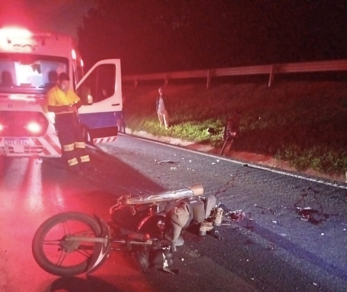 Um acidente de trânsito envolvendo duas motocicletas deixou dois homens feridos na noite de quinta-feira (5) na rodovia PR-151, no trecho entre Carambeí e Castro, nos Campos Gerais. De acordo com informações repassadas pela Polícia Militar Rodoviária, o sinistro ocorreu por volta das 23h, no km 294. Segundo os dados levantados no local, uma Honda Pop 100, conduzida por um homem de 43 anos, e uma Honda CG 150, conduzida por outro homem de 40 anos, trafegavam pela rodovia quando acabaram se envolvendo em uma colisão traseira. Com o impacto, ambos os condutores sofreram ferimentos considerados moderados. Equipes de socorro foram acionadas e realizaram o atendimento às vítimas, que foram encaminhadas para unidades de saúde da região. Um dos motociclistas foi levado para a UPA de Castro, enquanto o outro foi encaminhado para o Hospital Regional de Ponta Grossa para avaliação médica. As motocicletas apresentaram danos materiais, porém foram liberadas no local para familiares dos envolvidos após os procedimentos da equipe policial.