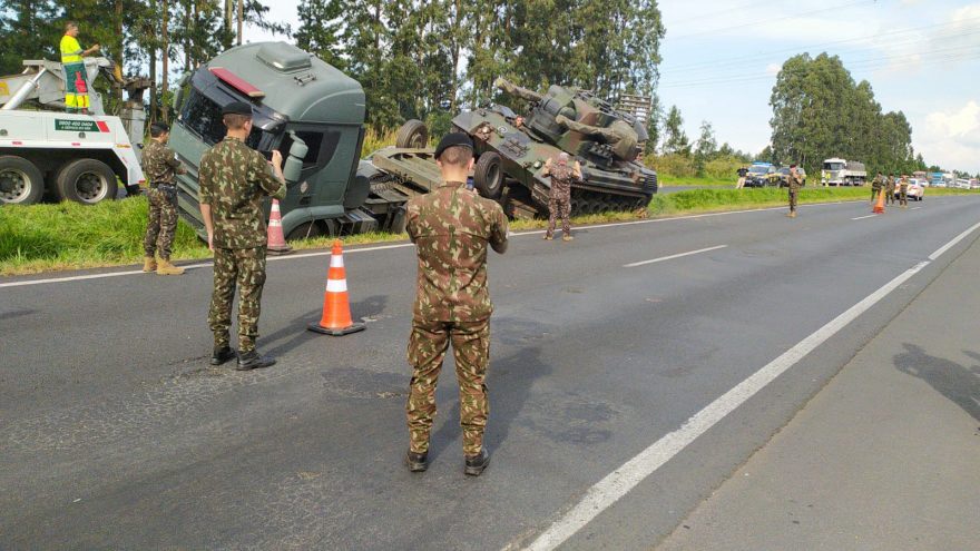Caminhão do Exército que transportava blindado sai de pista na região