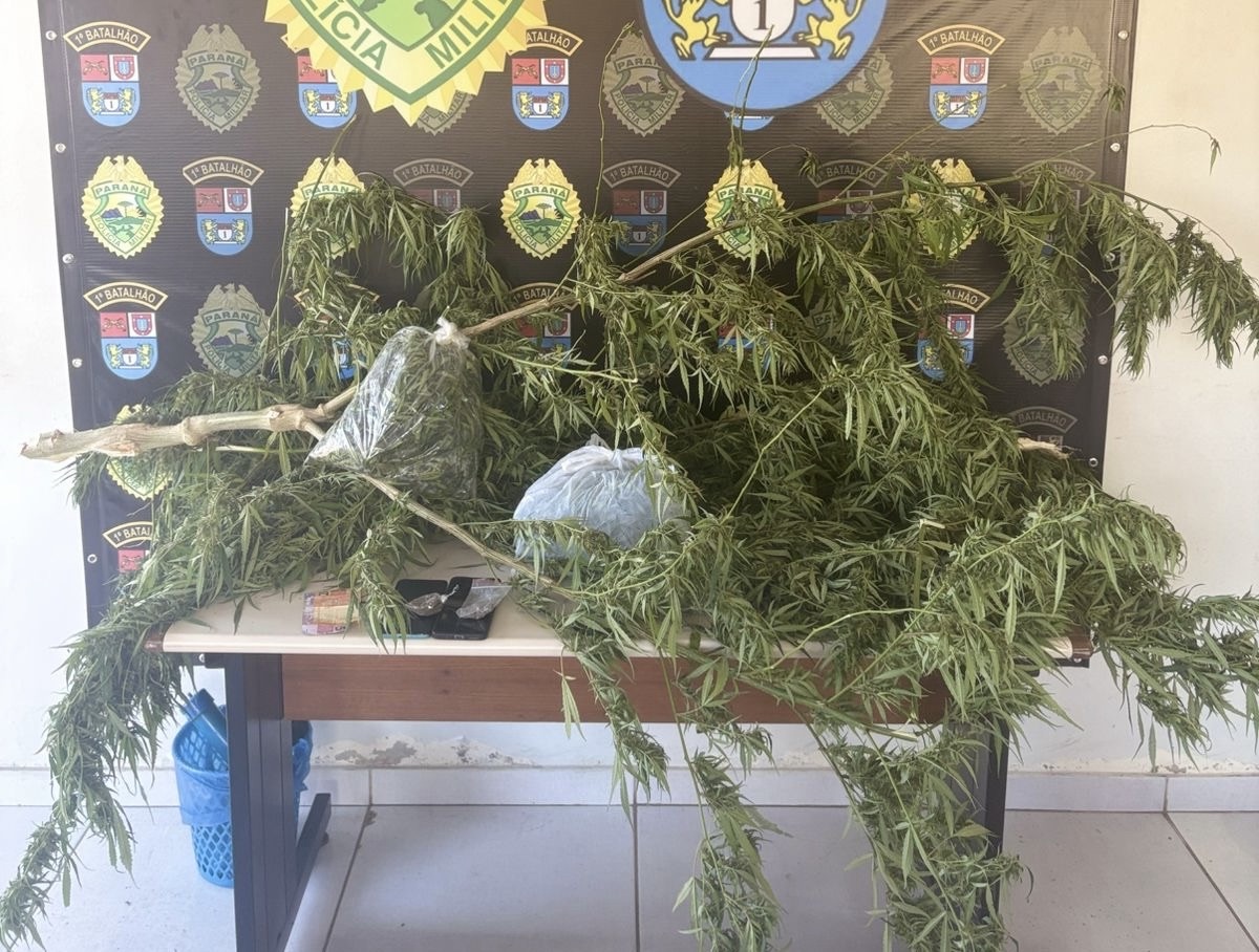 A Polícia Militar do Paraná realizou a apreensão de entorpecentes e a prisão de um suspeito no início da tarde desta quarta-feira (15). A ocorrência teve início após denúncias que indicavam a prática de tráfico de drogas em uma residência. Durante as diligências, os policiais constataram a situação e deram sequência à abordagem. O caso foi registrado no bairro Cará-Cará, em Ponta Grossa, onde a equipe visualizou, nos fundos do imóvel, um pé de maconha cultivado. Durante a ação, um homem tentou fugir, mas foi rapidamente contido pelos policiais. Com ele, foram encontrados dois aparelhos celulares. Em continuidade às buscas no local, a equipe localizou um pé de maconha com aproximadamente 1,90 metro de altura, além de cerca de 650 gramas de flores da substância, mais uma porção adicional e uma quantia em dinheiro. Diante dos fatos, o suspeito recebeu voz de prisão e foi encaminhado à delegacia, juntamente com os materiais apreendidos. A ação reforça o trabalho da Polícia Militar no combate ao tráfico de drogas, destacando a importância das denúncias da população para o êxito das operações.